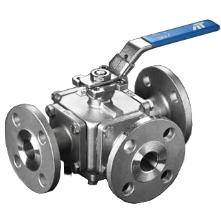 A-T CONTROLS Series 33 Manual Ball Valve, 3-Way Full Port, 316 SST, 1-1/2" NPT, RTFE, T-Port