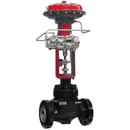 • They are equipped with metal seats, cage guiding and quick-change trim and push-down-to-close valve plug action. These valves use balanced valve plugs.
