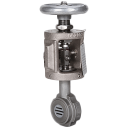 The hand wheel operator allows the user to manually position the valve for optimum flow and lock in place. The valve is available in 1″, 1-1/2″ and 2″ sizes.