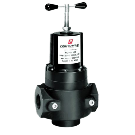 Brand: Fairchild Industrial Products - by RotorkThe Rotork Fairchild Model 100 is a high flow precision pressure regulator designed for applications that require high performance, large volume flow and accurate process control. Like many of the Fairchild precision regulators, the compensating action of the inner valve assembly of the Model 100 allows complete stabilization of downstream pressure.